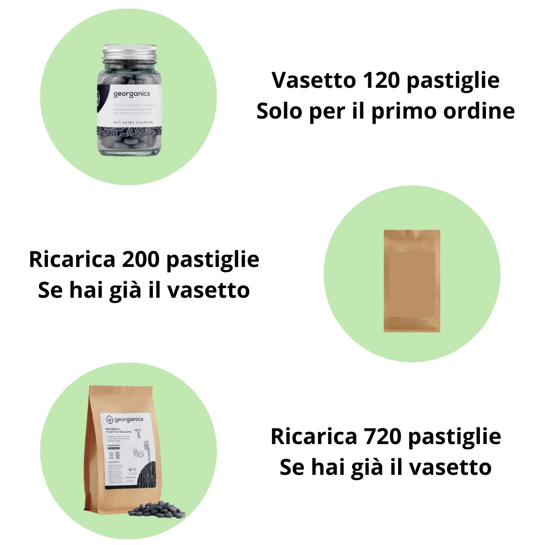 - 720 pastiglie di dentifricio ai carboni attivi senza fluoro